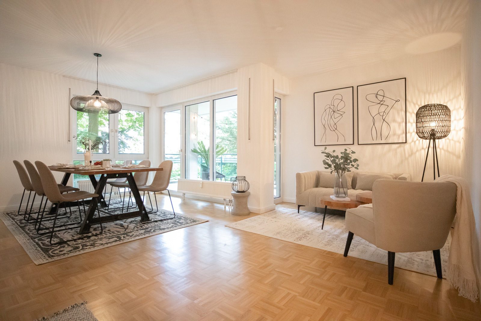 Durch ein ruhiges Farbkonzept und eine harmonische Einrichtung erschaffen wir eine Atmosphäre, in der sich Kaufinteressierte zu Hause fühlen. Bonus: Deine Verkaufsfotos sehen umwerfend und professionell aus!